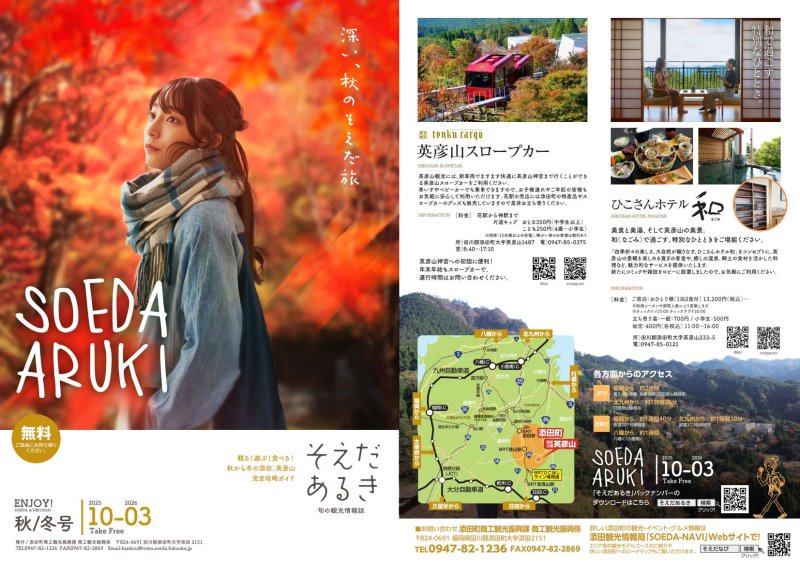 添田・英彦山の旬の観光情報誌「そえだあるき」のWebサイトへアクセスありがとうございます。こちらでは「そえだあるき」最新号はもちろん、バックナンバーもご覧いただけます。添田・英彦山へお越しになられる際には是非このWebサイトをチェックされてください。
